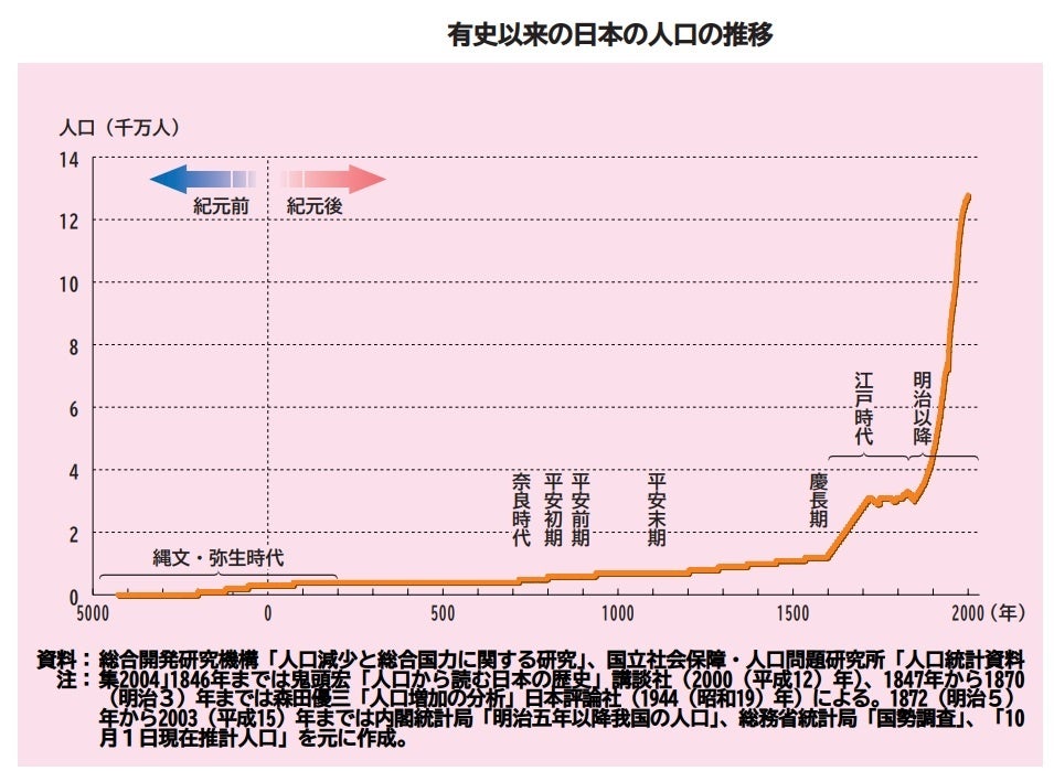 そう考えていくと遡る事、約400年前の江戸時代は日本の人口は大よそ3000万人、令和5年3月概算値1億2449万人(総務省統計局調べ)4倍になっているという事は、遡れば遠い親戚の方も多いはずです。もしかしたら、あなたの隣にいる人も遠い遠い親戚であるというのは言い過ぎではないと思います。下記グラフは平成16年少子化社会白書より